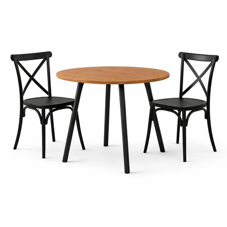 Comedor Ibiza Amaretto y Negro 80x75cm Circular de Cuatro Puestos con Dos Sillas
