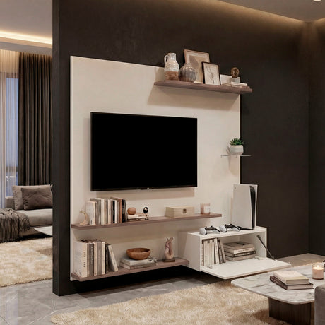 Mesa para TV Live Fresno y Negro 180x58cm para TV Hasta 65" Pulgadas con Cinco Compartimientos
