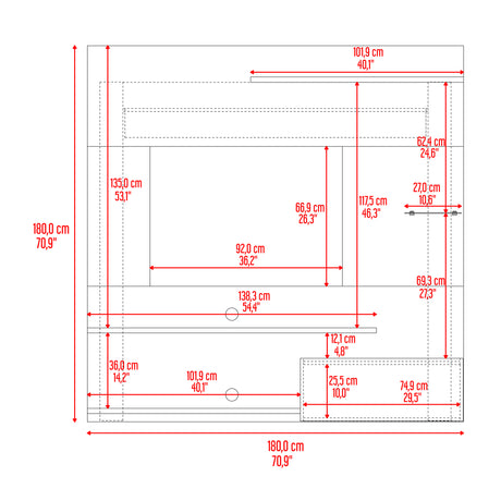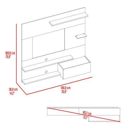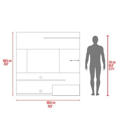 Mesa para TV Style Negro y Fresno 180x55cm para TV Hasta 77" Pulgadas con Cuatro Compartimientos