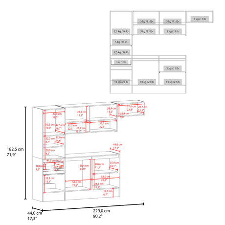 Estantería Home Blanco 45x181cm con Cinco Compartimientos