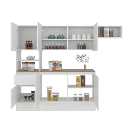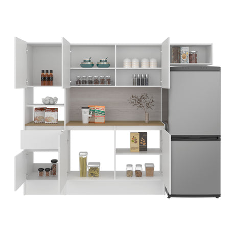 Cocina Dali Blanco y Fresno Europeo 229x182.5cm sin Mesón y sin Pozuelo