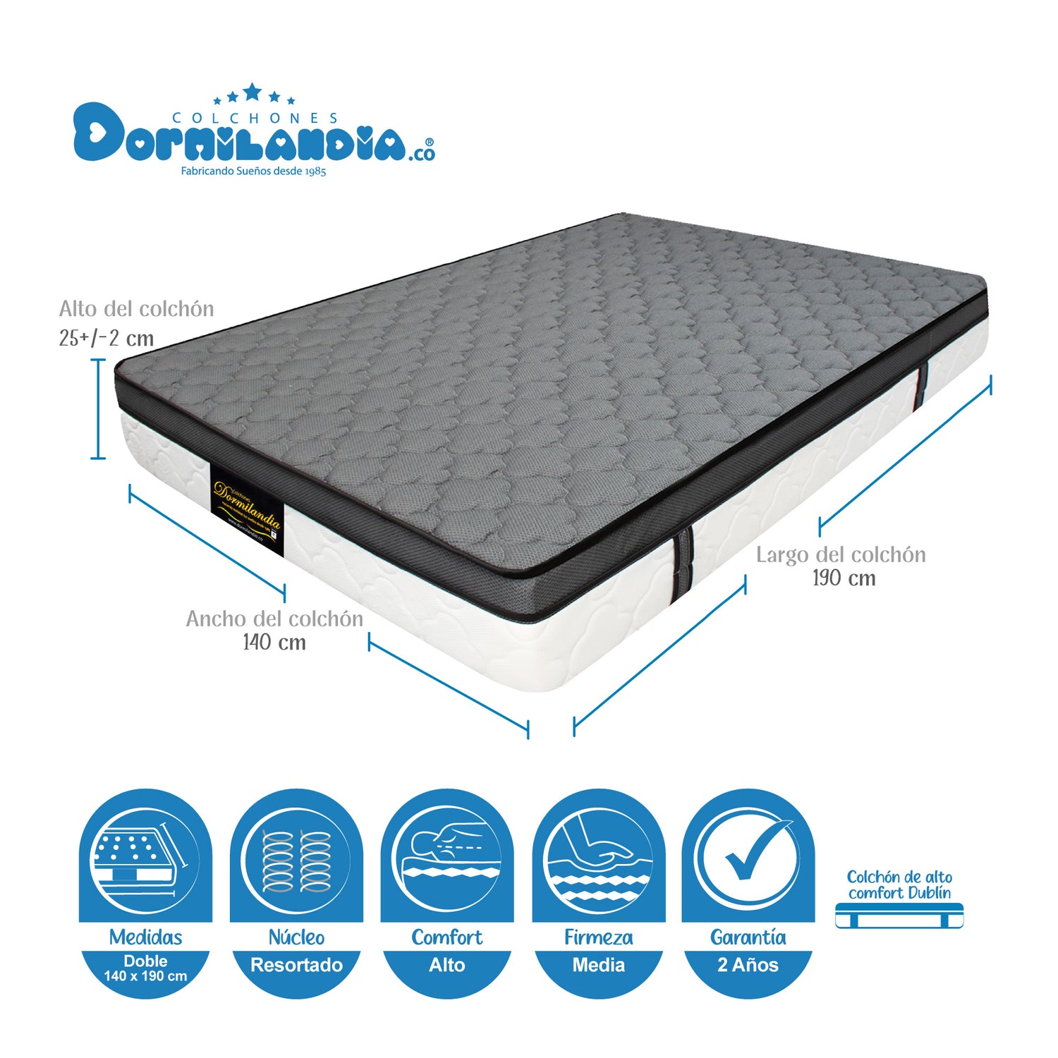 Colchón Dublín Gris Doble 140 X 190 Cm Firmeza Medio