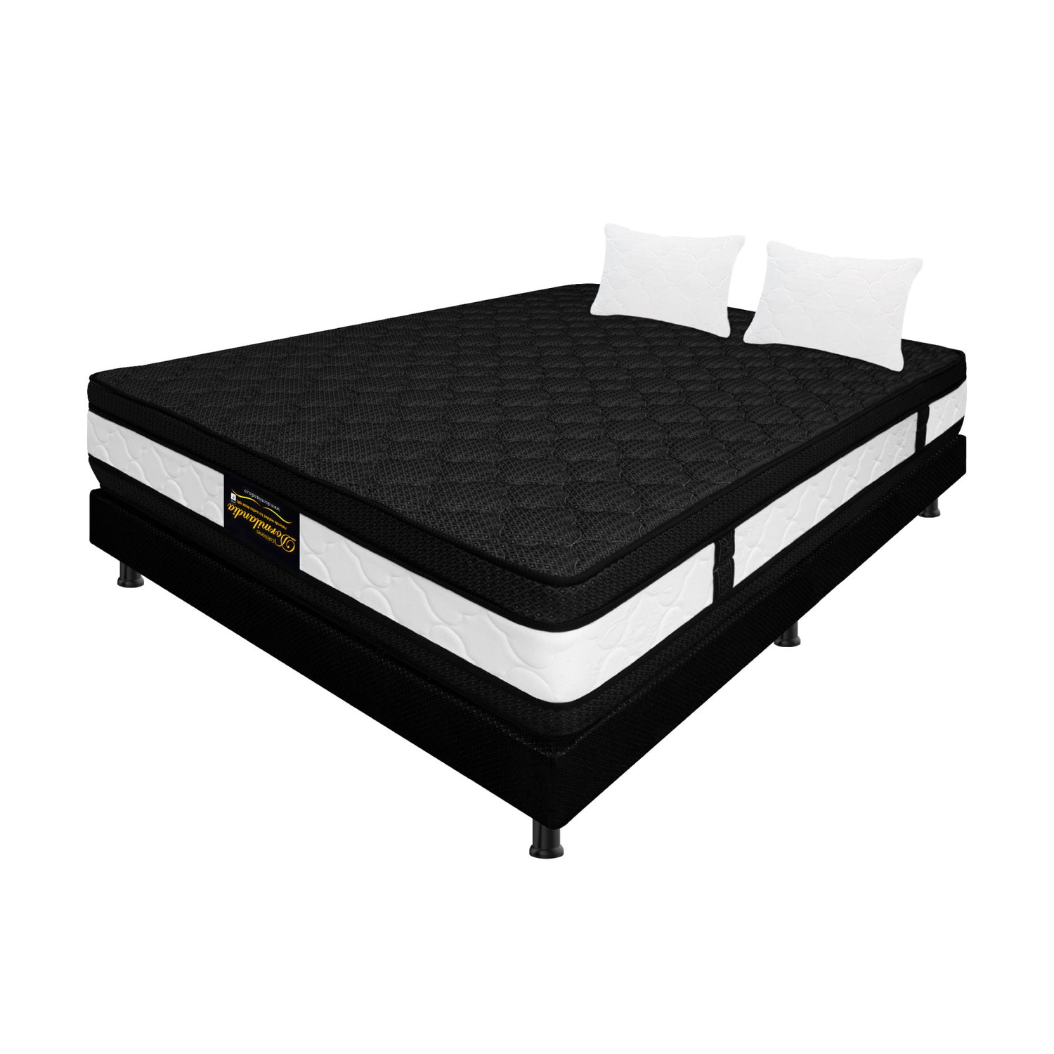 Combo Base Cama y Colchón Blanco y Negro Doble 140 X 190 Cm Firmeza Medio Suave Doble Faz
