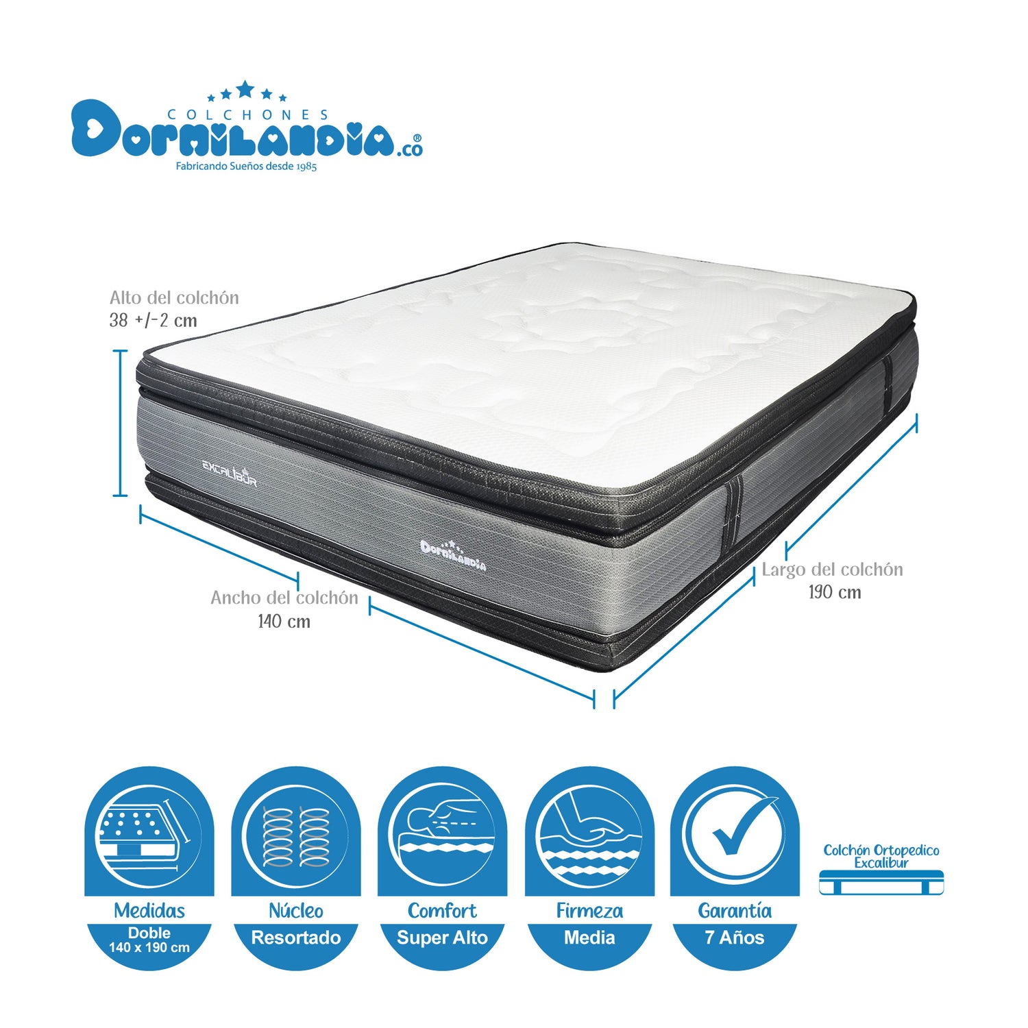 Combo Base Cama y Colchón Excalibur Gris y Negro Doble 140 X 190 Cm Firmeza Medio Doble Faz
