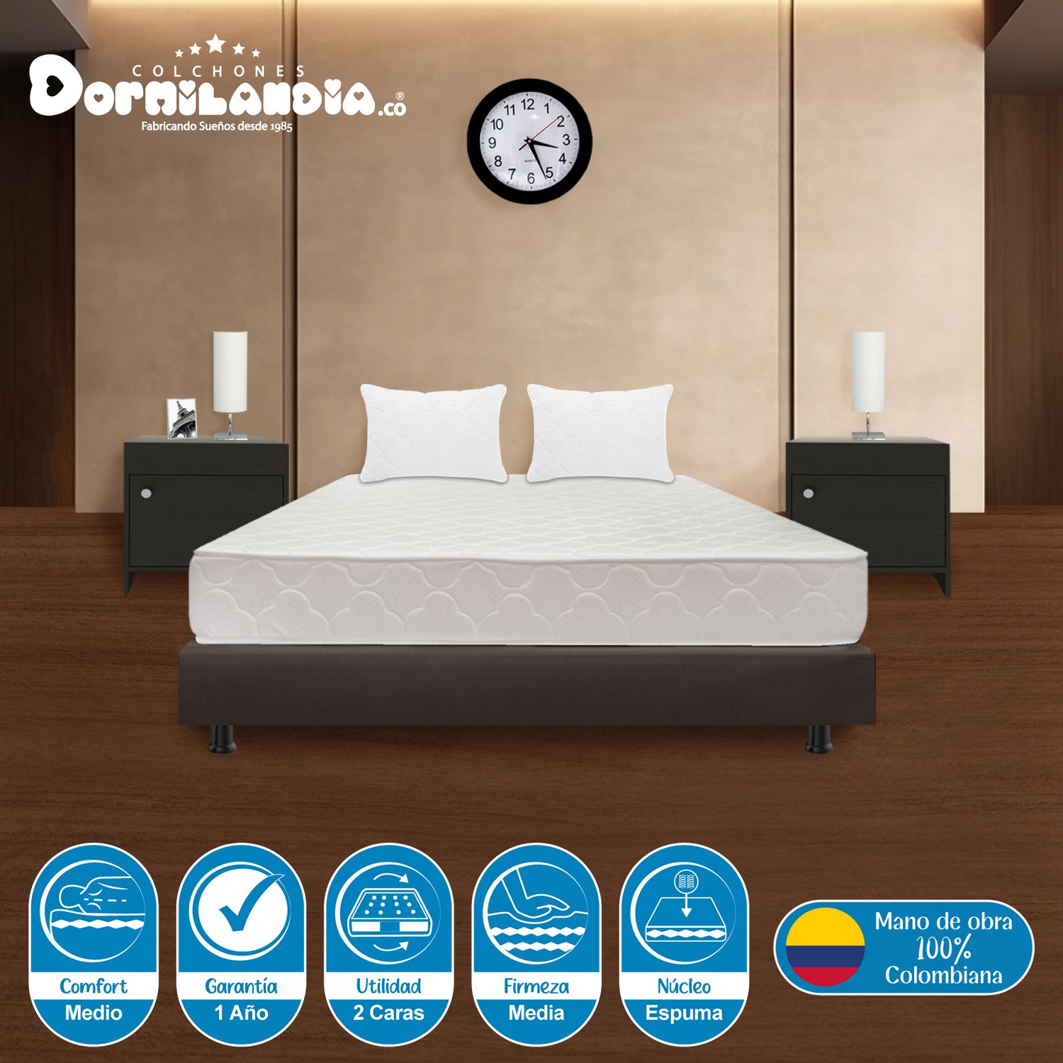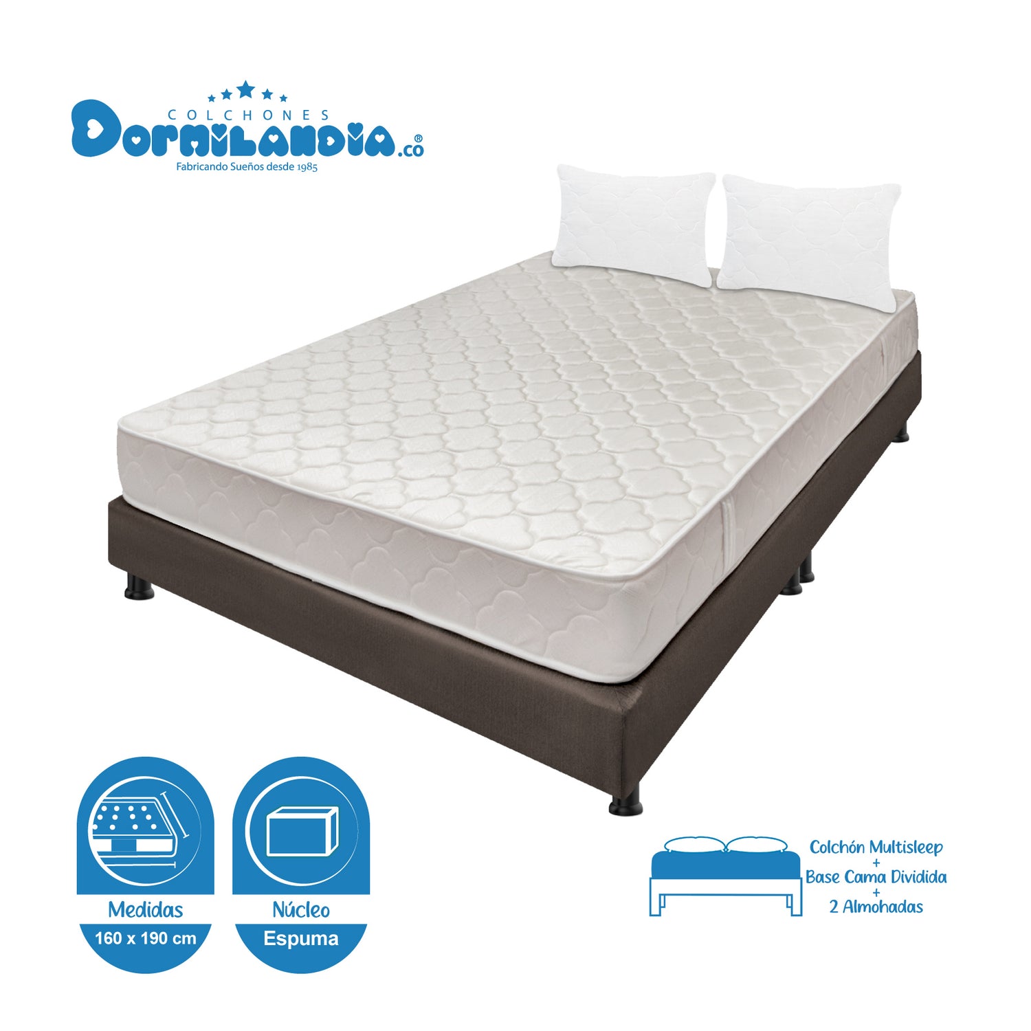 Combo Base Cama y Colchón Multisleep Blanco y Cafe Queen 160 X 190 Cm Firmeza Medio Doble Faz