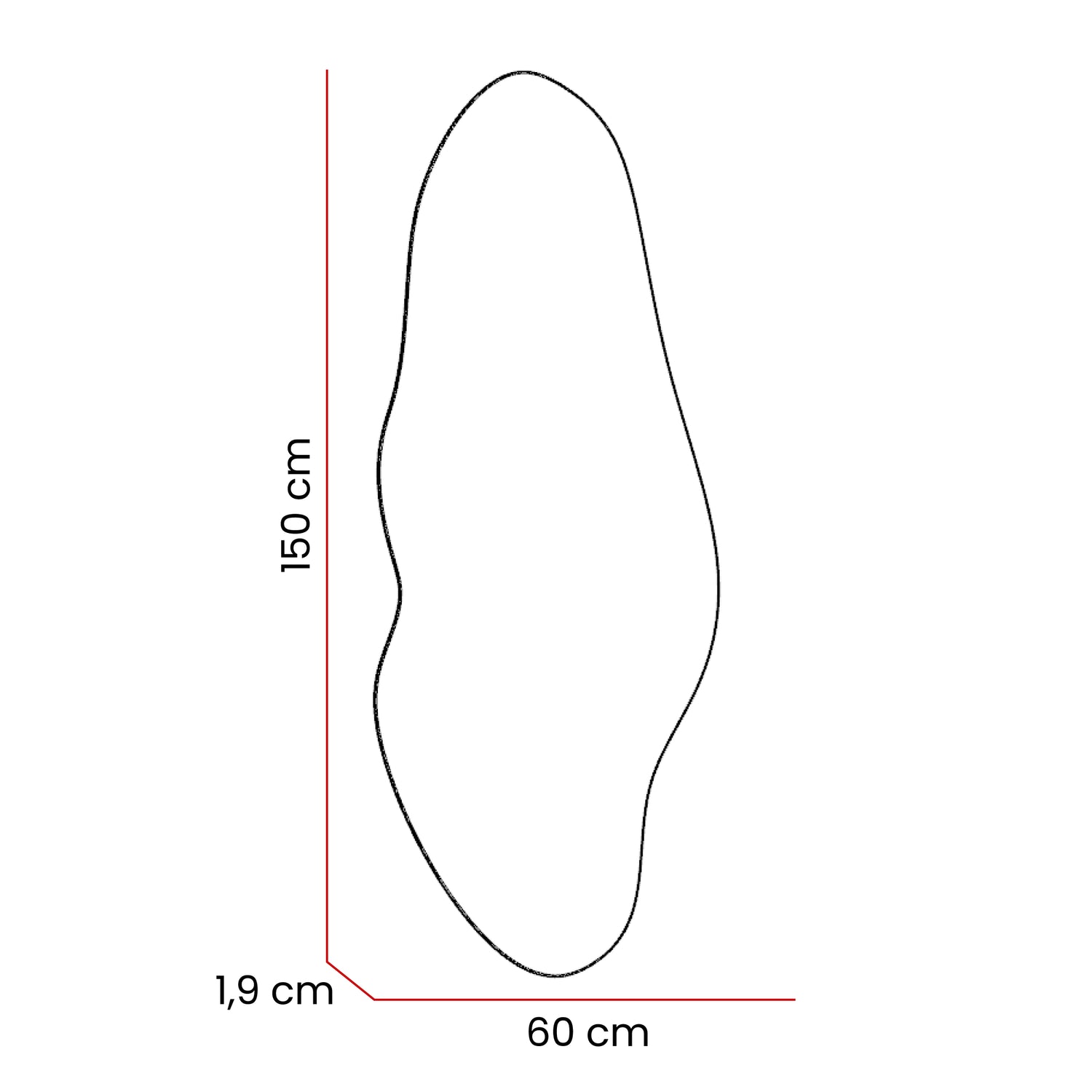 Espejo de Pared Blue Plateado 150x60cm Asimetrico sin Marco