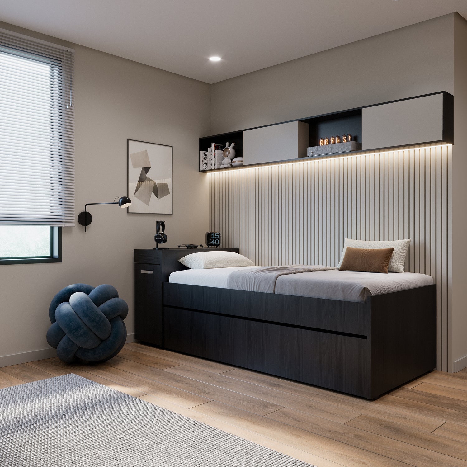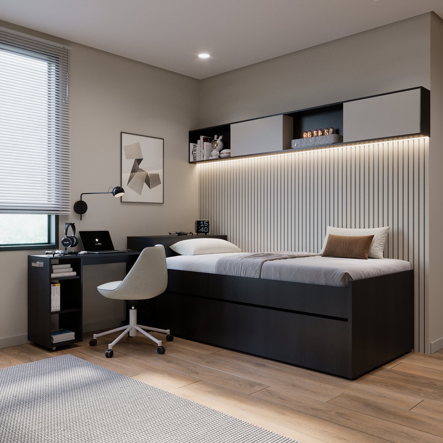 Cama Nido Lia Wengue 96x83cm con Escritorio para Cama Sencilla y sin Colchones