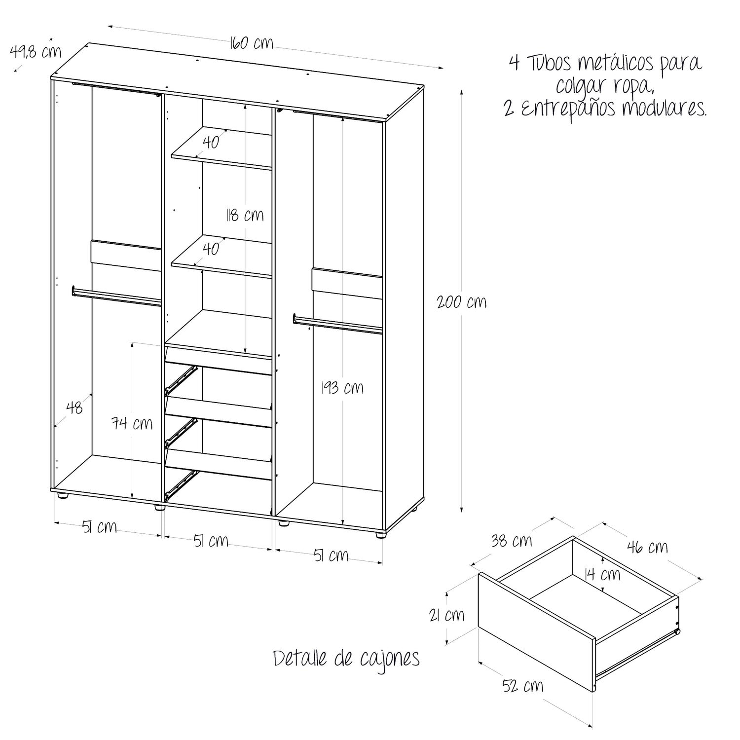 • Amplio espacio de almacenamiento para organizar todas tus prendas y accesorios.