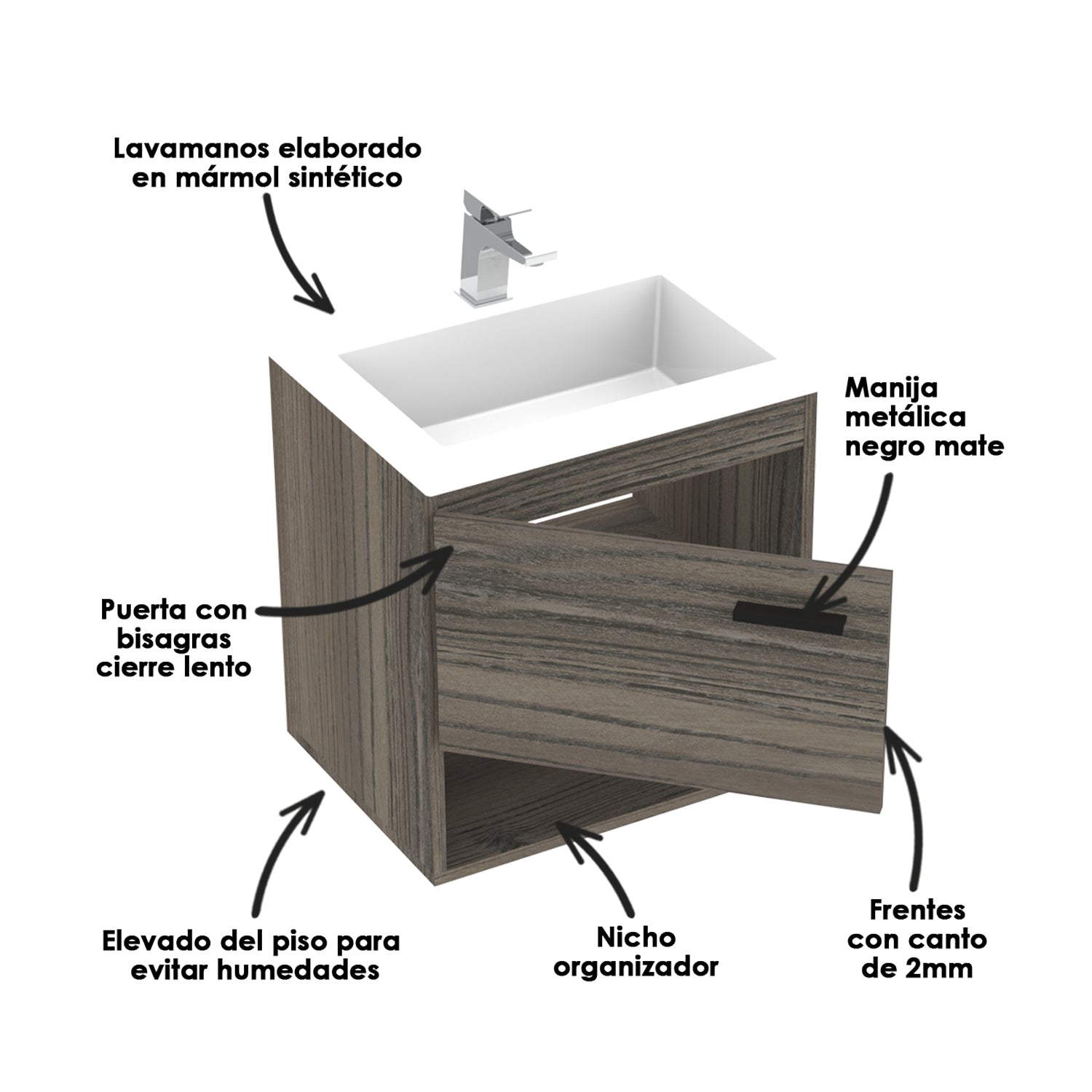 Mueble Para Lavamanos Life Mitte 48x48cm Flotante Con Lavamanos Oslo