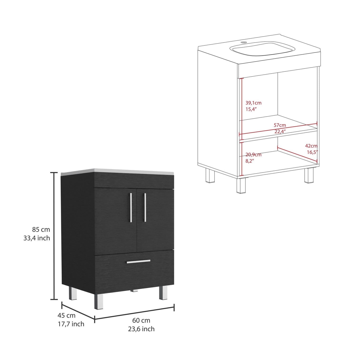 Mueble para Lavamanos Velloc Wengue 60x85cm con Lavamanos y Un Cajón