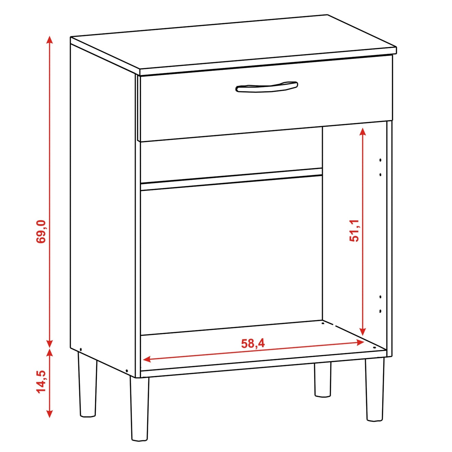 • Cajón con manija metálica para un fácil acceso.