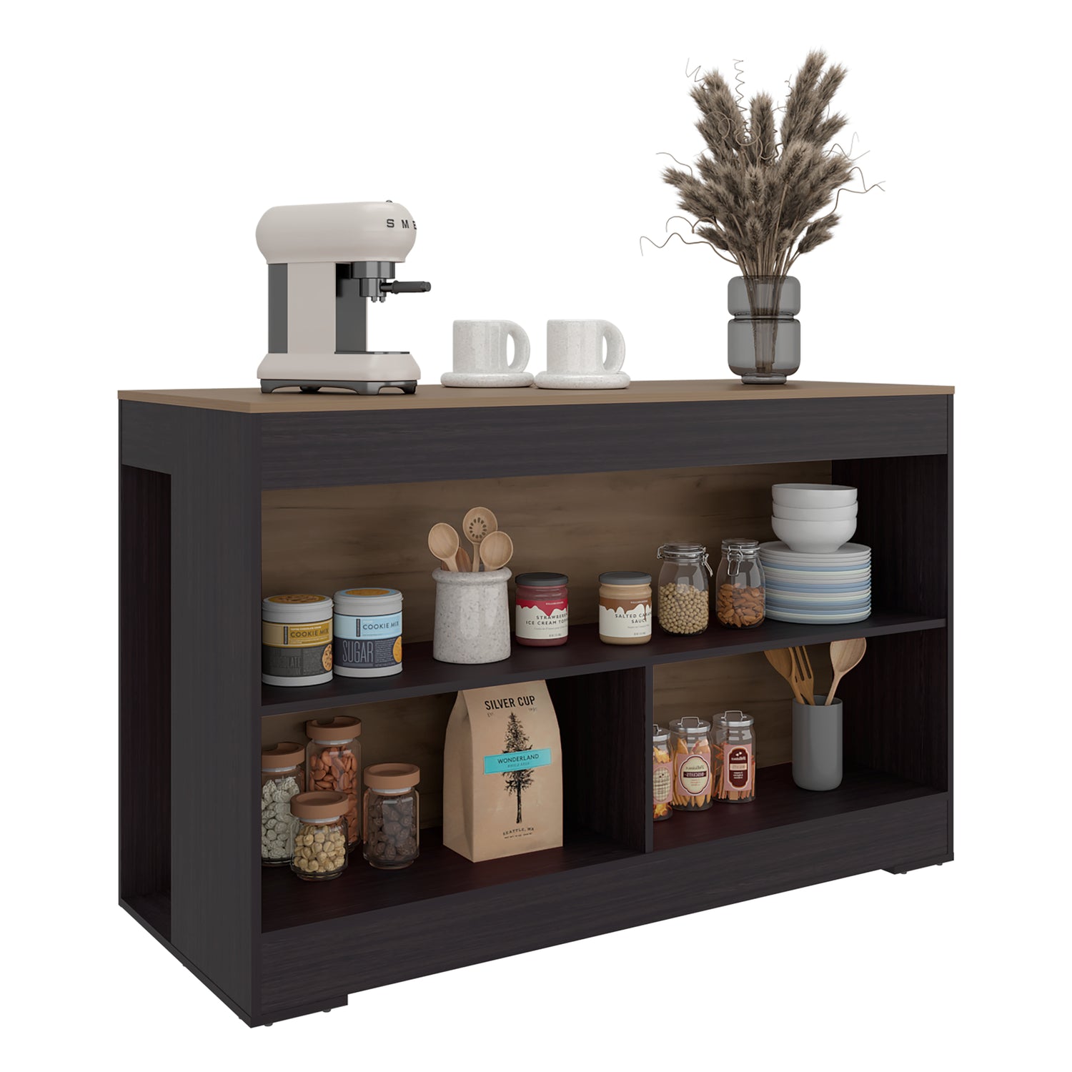 Barra de Cocina Cuenca Wengue y Fresno 138.2x88.5cm con Un Entrepaño y con Tres Compartimientos