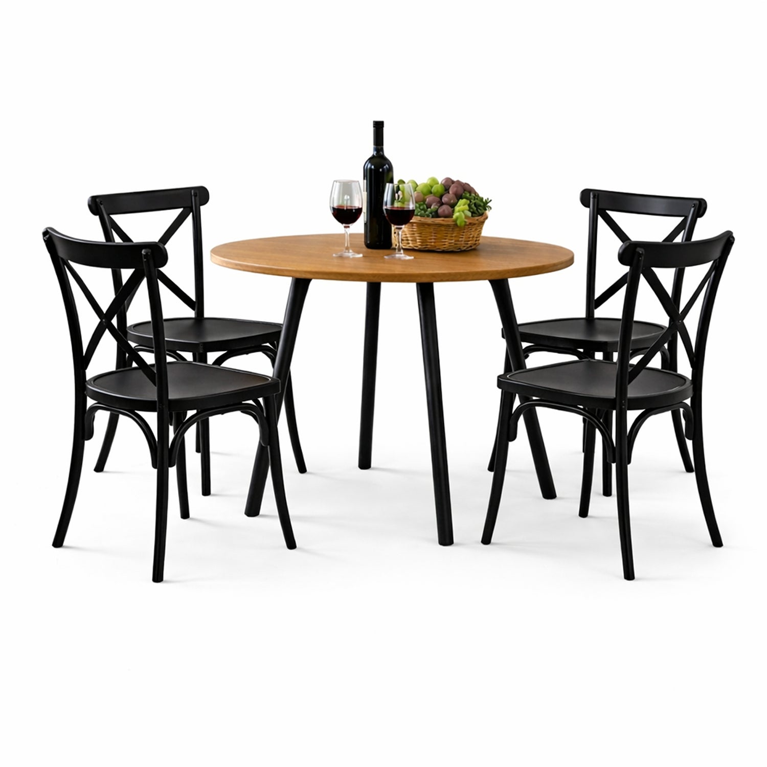 Comedor Ibiza Amaretto y Negro 80x75cm Circular de Cuatro Puestos con Cuatro Sillas