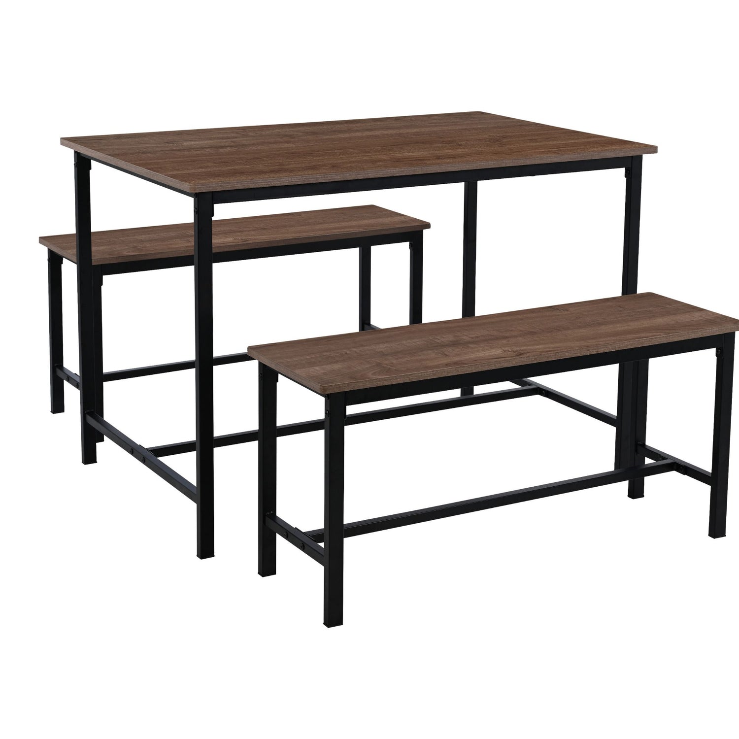 Juego de Comedor Retro Marrón 110x75cm Rectangular de Seis Puestos con Dos Bancos