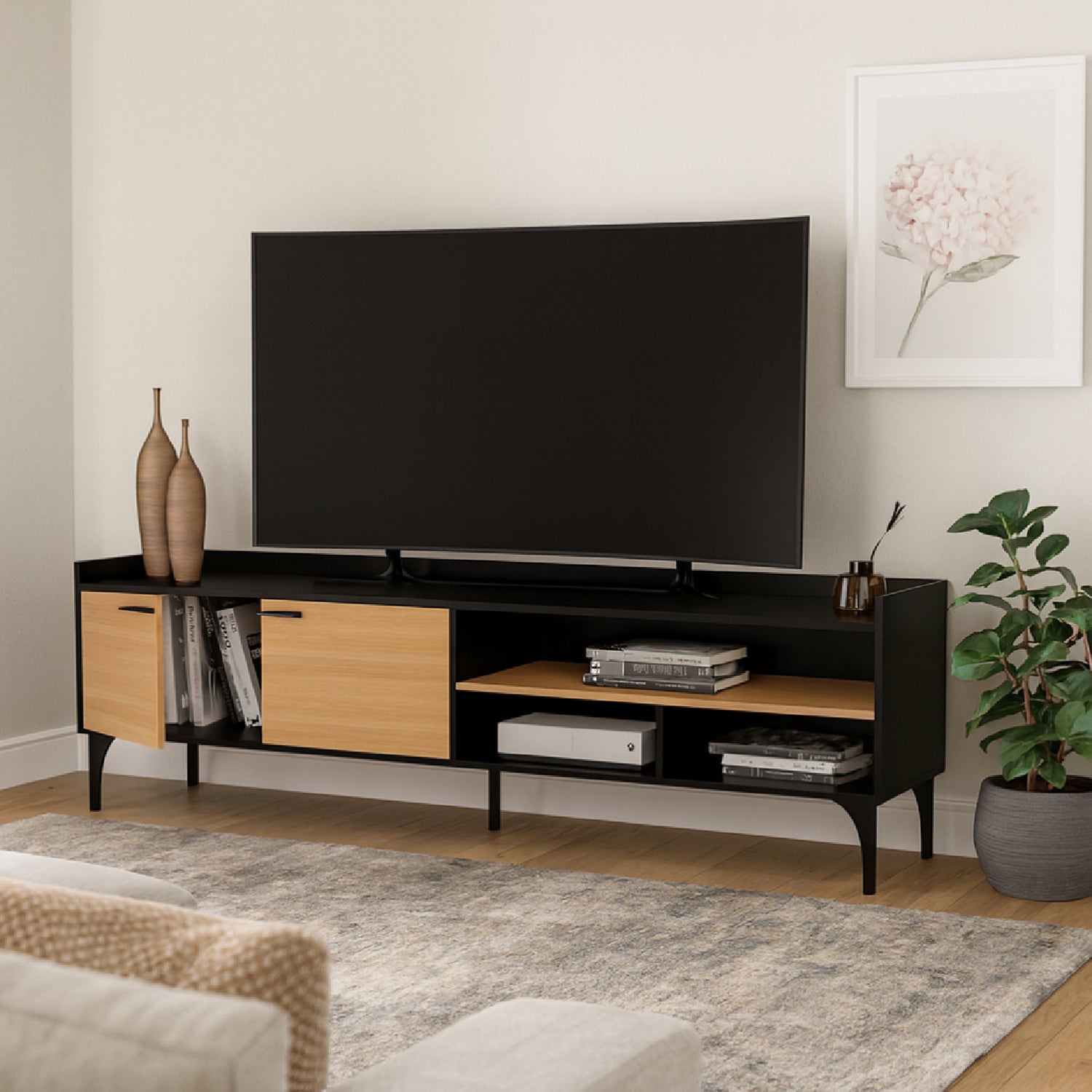 Mesa para TV Style Negro y Fresno 180x55cm para TV Hasta 77" Pulgadas con Cuatro Compartimientos