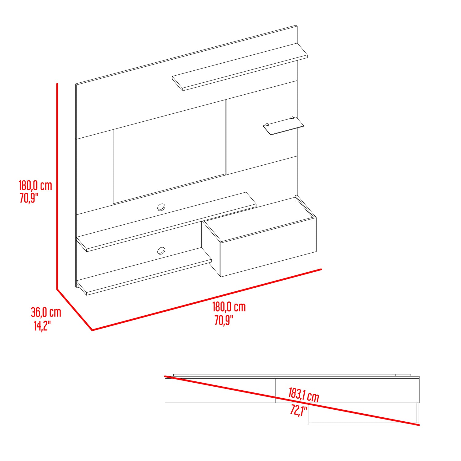 Panel de TV Henry Blanco Marquez y Avellana 180x180cm para TV Hasta 65" Pulgadas con Ranura para Cables